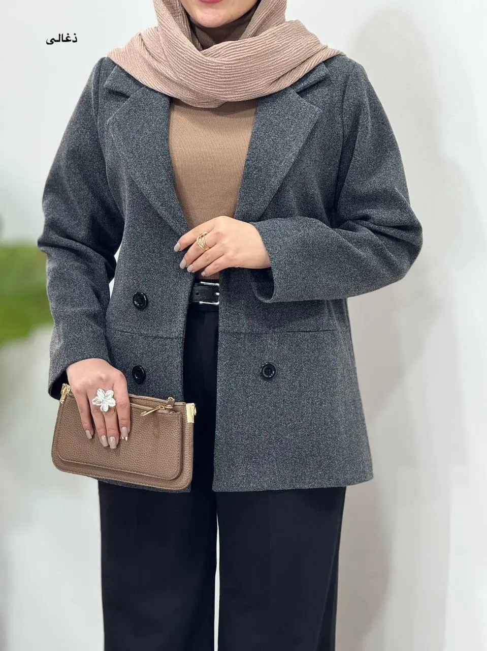 یکی از بهترین راهها برای تکمیل کردن استایل با پالتو کتی فوتر، استفاده از اکسسوریهای مناسب است. شال یکی از ضروریترین اکسسوریهای زمستانی است که نه تنها شما را گرم نگه میدارد، بلکه لایهای از استایل و رنگ هم به ظاهر شما اضافه میکند. شالهای بافتنی ضخیم و پشمی برای روزهای بسیار سرد عالی هستند. میتوانید از شالهایی با رنگهای خنثی مثل خاکستری، کرم یا مشکی استفاده کنید که با همه چیز ست میشوند، یا میتوانید از یک شال رنگی مثل قرمز شرابی، سبز کاجی یا حتی راهراه استفاده کنید که به عنوان یک accent piece عمل میکند و ظاهر شما را جذابتر میکند.